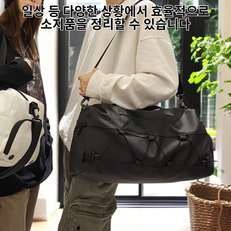 ● 남녀노소 누구나 사용 가능한 유니섹스 디자인으로, 스타일과 실용성을 모두 갖춘 대용량 피트니스 여행가방입니다. ● 건습 분리 수납 공간이 있어 운동 후 땀에 젖은 옷과 마른 옷, 신발 등을 위생적으로 분리하여 보관할 수 있습니다. ● 넉넉한 수납공간과 다양한 포켓 구성으로 피트니스, 여행, 일상 등 다양한 상황에서 효율적으로 소지품을 정리할 수 있습니다. ● 내구성이 뛰어난 방수 소재로 제작되어 외부 충격이나 습기로부터 소지품을 안전하게 보호해줍니다. ● 어깨끈과 손잡이 모두 인체공학적으로 설계되어 장시간 착용해도 편안한 착용감을 제공합니다.
